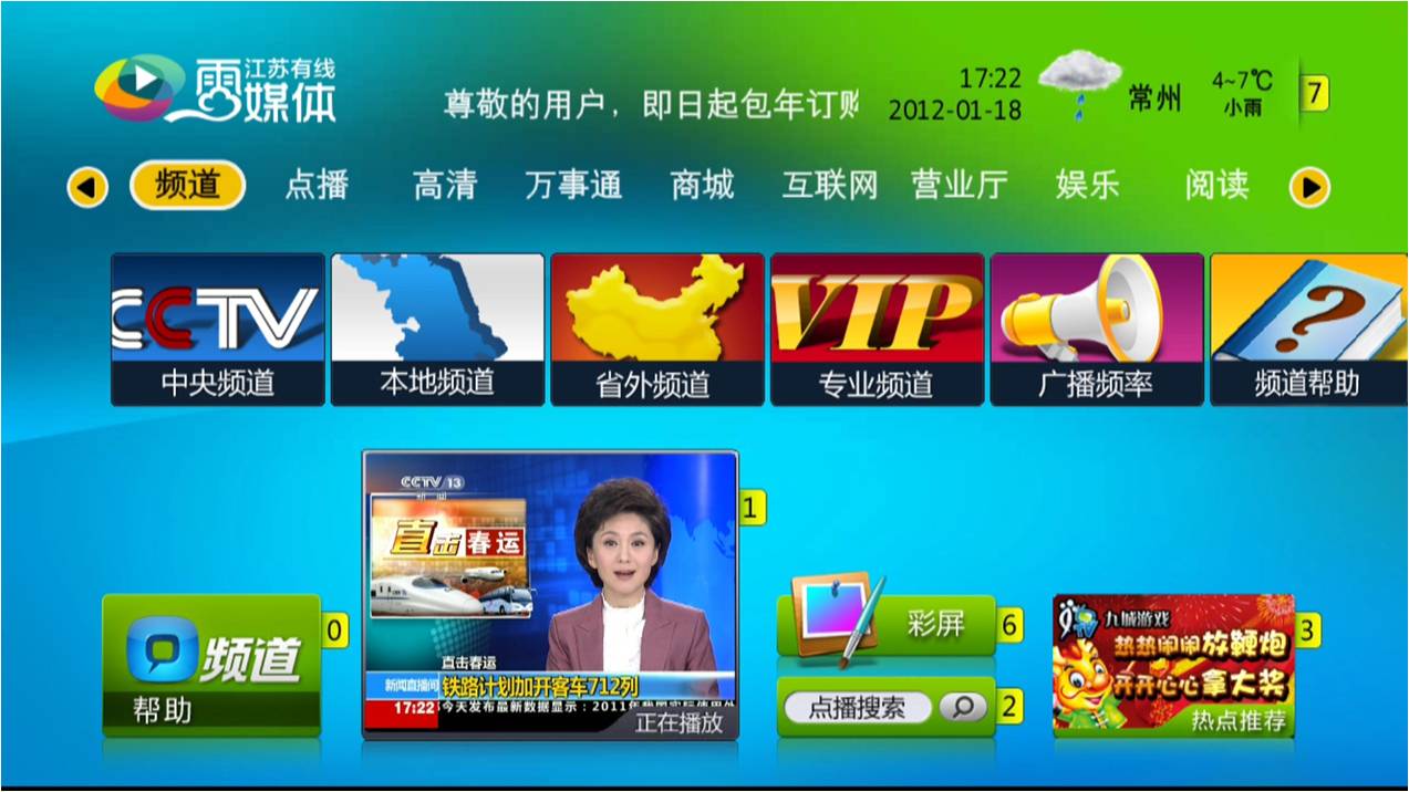 互動數字電視除具有普通數字電視的全部功能外,還可以實現實時點播、時移電視、頻道回看、播放控制等主動收看功能,使用戶可以在任何時間通過遙控器選擇自己想看的節目,節目播放也可以自行控制,交互數字電視還將與銀行、券商、教育等部門合作推出水電繳費、實時證券交易、電視購物、遠程教育及上網等全新增值業務。