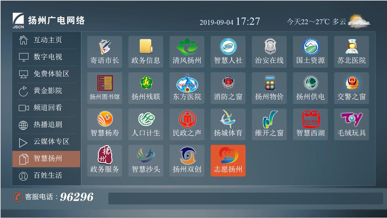 江蘇有線揚州分公司為進一步服務用戶、服務群眾、服務黨委政府、服務地方經濟和社會發展,通過整合原有資源,著力打造“智慧揚州”電視互動平臺集群,依托廣電高清互動強大的平臺能力,圍繞客戶需求,為政府、企業等集團用戶量身定制集視頻、資訊、互動為一體的個性化綜合門戶服務,建設智能化、信息化的電視信息發布渠道,滿足集團用戶宣傳推廣與向特定人群提供專享服務的需求。在數字電視高清互動主頁開辟“智慧揚州”專區,目前已經形成了寄語市長、揚州就業、國土資源、蘇北醫院、應急時空、消防之窗、揚州物價、揚州供電、揚城體育、民政之聲、清風揚州、電視圖書館等20余個“智慧揚州”電視互動平臺集群,覆蓋政務、民生、醫療、文化等領域,服務地方公用事業,形成特色新業態。