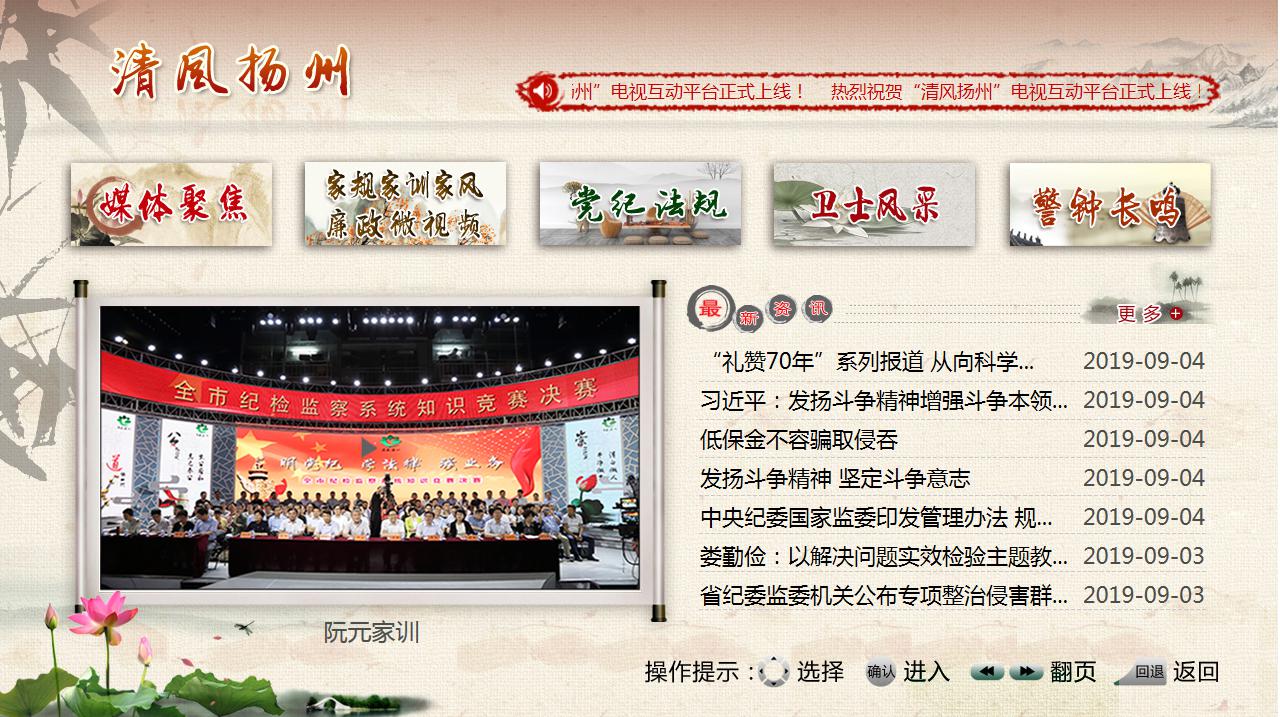 公司與市紀委緊密合作,共同開創了“清風揚州”電視互動平臺,通過生動的圖文、視頻宣傳形式,為市委黨風廉政建設提供了新的宣傳陣地。